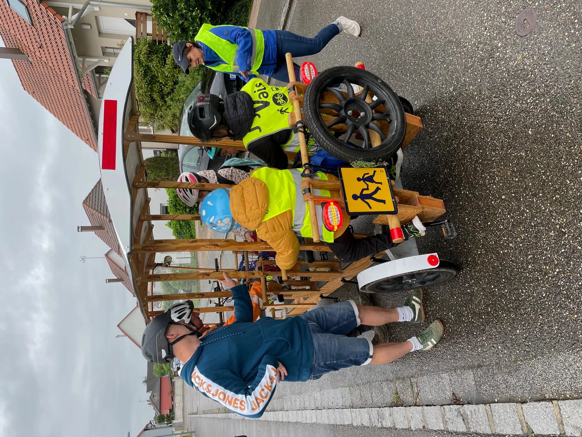 Ce matin-là, Damien, papa d’une petite fille de 9 ans, était le chauffeur. Le mobigoutte a récupéré les premiers enfants à 7h35 rue de Reiskirchen à Muttersholtz, puis rue des écureuils et rue des castors. Le vélobus est à assistance électrique, grâce à des panneaux solaires et un chargeur, mais les coups de pédale des enfants ont bien aidé Damien. A 8h, les huit enfants ont été déposés devant la grille de l’école (avec cartable et sac de piscine !). Le vélobus viendra les récupérer à 16h. Et les adultes aussi ont voulu tester ! Ainsi le conseil municipal de Muttersholtz a profité samedi dernier du Mobigoutte pour faire une visite de travail autour des mares du ban communal.