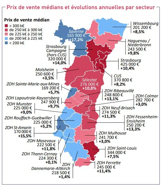 "Les prix des maisons ont fortement augmenté à Strasbourg, Wissembourg, Saverne, Ribeauvillé, Neuf-Brisach, Ferrette ou Saint-Amarin. La maison reste attractive. Au vu des fortes augmentations en 2022, on assistera peut-être à un ralentissement de la progression ou à une stabilisation des prix en 2023", déclare Claudine Lotz, Présidente de la Chambre des notaires du Bas-Rhin.