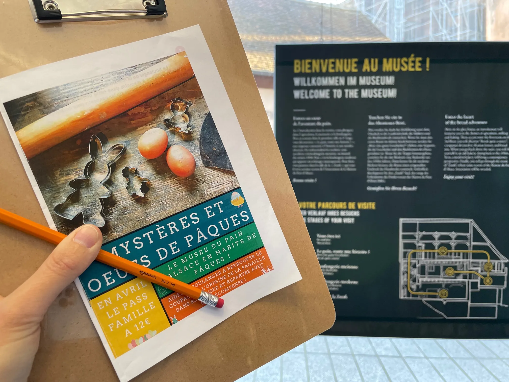 « Aidez le boulanger à retrouver le coupable à l’origine de la pagaille dans son musée et repartez avec une récompense » : le synopsis nous a tout de suite attiré ! Inutile de prendre rendez-vous, présentez-vous directement à l’accueil de la Maison du pain à Sélestat pour participer à cette enquête. En toute autonomie, vous pourrez la faire en famille (avec des enfants dès 6 ans sans soucis). Un livret de jeu vous sera remis et c’est parti.