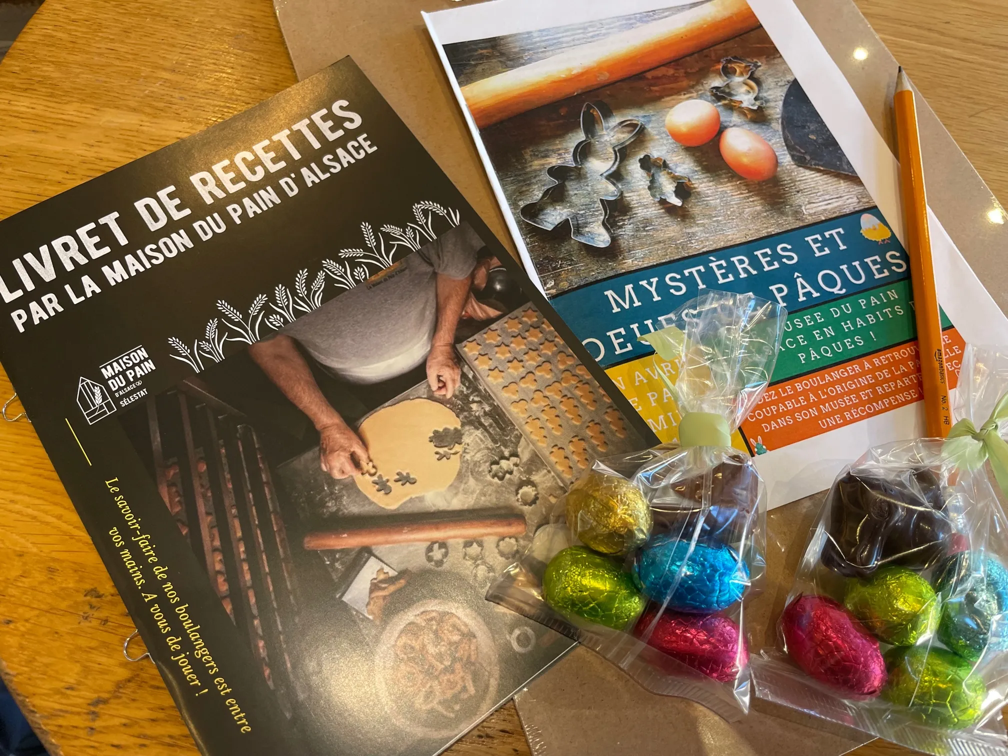 Pour cette première enquête proposée par la Maison du pain de Sélestat (on nous a soufflé que d’autres enquêtes sont déjà dans les tuyaux…), le thème de Pâques est mis en avant. Comptez environ une grosse heure de jeu. Sans tout vous dévoiler, vous serez amené à observer les moules de Pâques (du lammele par exemple), à retrouver des nombreux oeufs cachés ici et là dans toutes les pièces du musée, à lire quelques panneaux explicatifs et surtout à observer et à vous amuser ! Le cahier de jeu est très complet et permet de bien s’orienter. On a calé sur quelques questions mais au final on a trouvé le coupable, on a trouvé le bonus et même la recette mystérieuse ! Et la récompense nous a bien sûr permis de reprendre des forces !