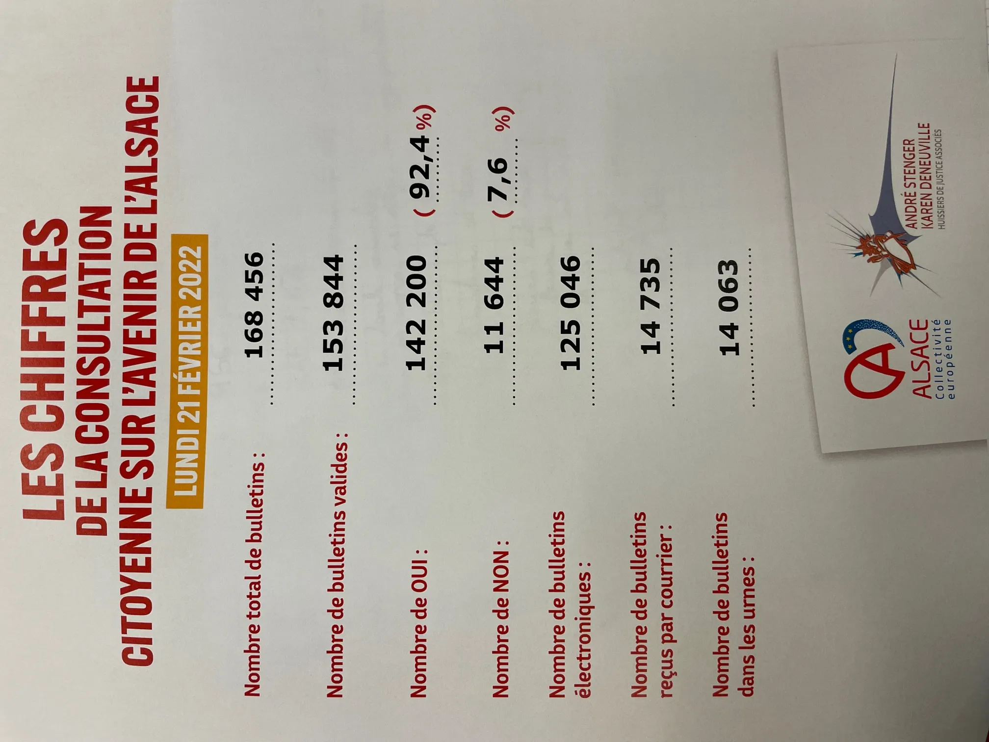 "Oui" à la sortie de l’Alsace du Grand Est. 92,4% des participants à la consultation citoyenne disent "oui" pour que l’Alsace redevienne une région à part entière.