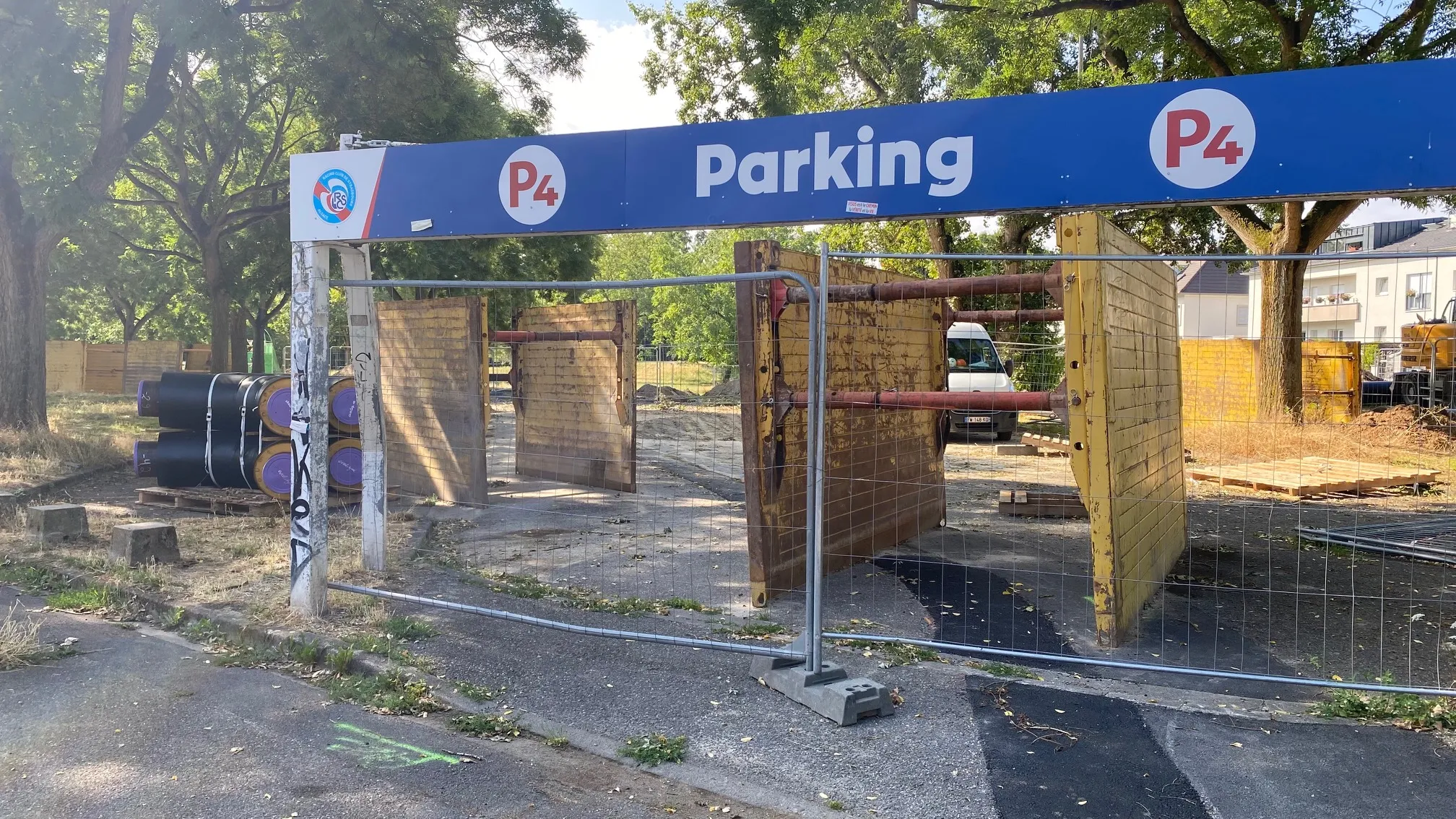 Le parking P4 sert désormais d'entrepôt de matériel. Crédit Photo : Top Music - JS