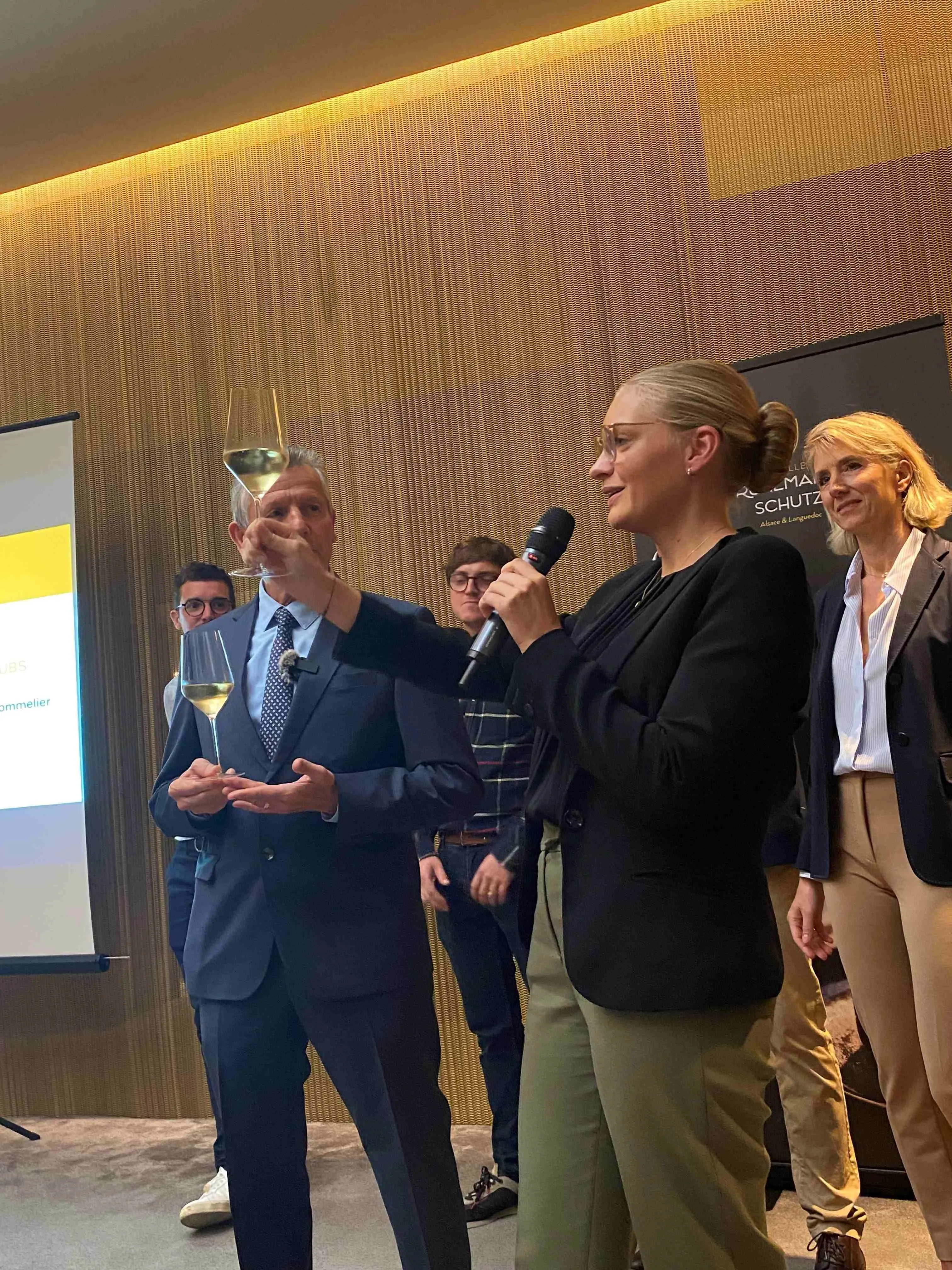 Serge Dubs, et Louise-Anne Ruhlmann, la sommelière du domaine / @TopMusic - SR