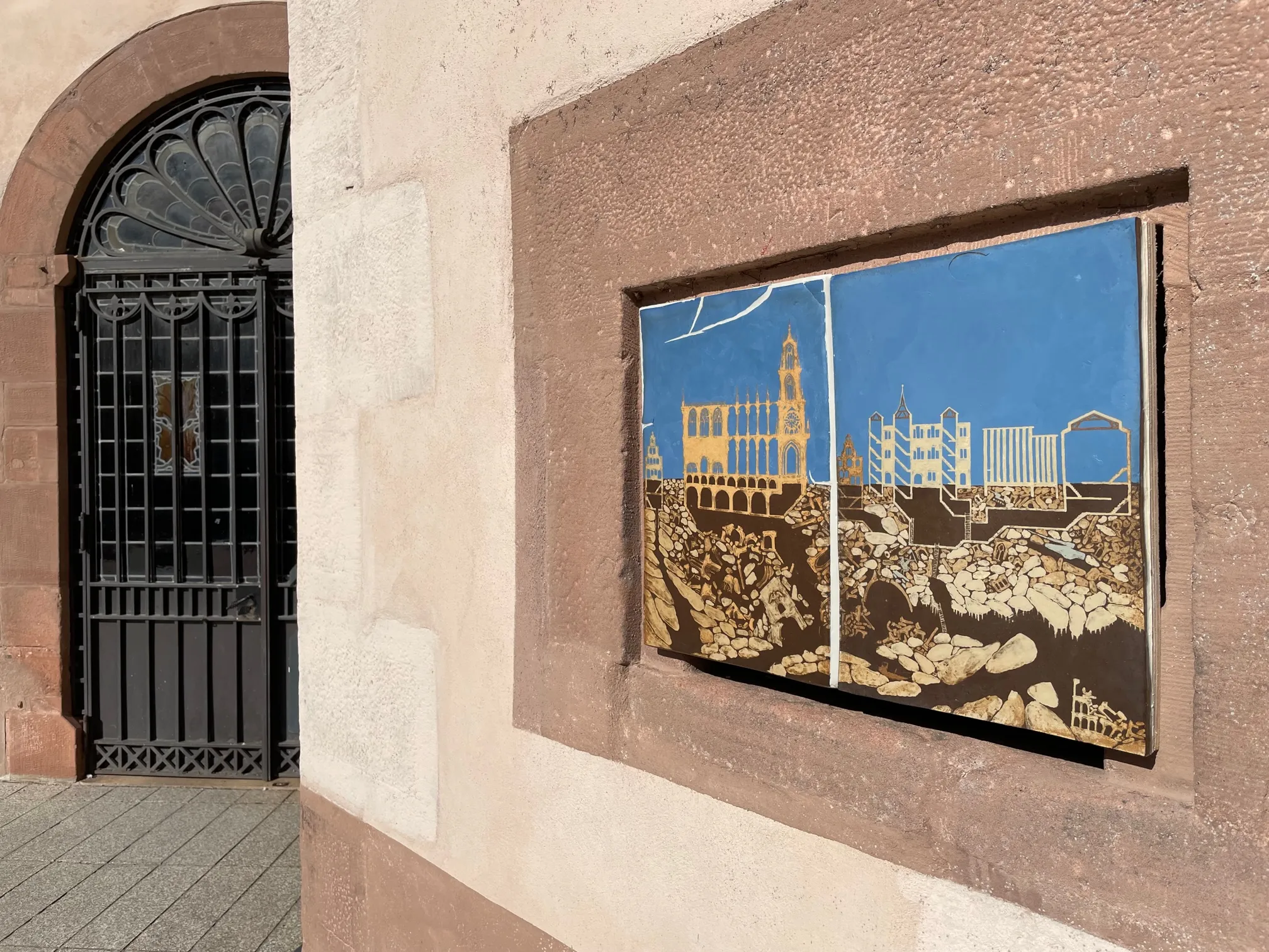 Dès ce samedi 23 septembre (et jusqu’au 5 novembre), vous pourrez voir des sculptures, des photographies, des vidéos, une installation textile, une oeuvre sonore, etc. Sur la place de la Victoire par exemple, Hugo Bel, installé en Normandie, réalise une installation in situ (c'est-à-dire qu'elle ne peut être transportée en un autre lieu) : « Je pars d’un lit en bois et je rajoute du plâtre naturel ». Quant à Clément Richem, artiste basé dans les Vosges, il expose une série de 11 dessins réalisés en céramique : « J’imagine ce qu’il peut y avoir sous terre ». Pour beaucoup d’artistes, c’est la première fois qu’ils exposent dans l’espace public. Pari réussi ? A vous de juger en vous baladant dans Sélestat.