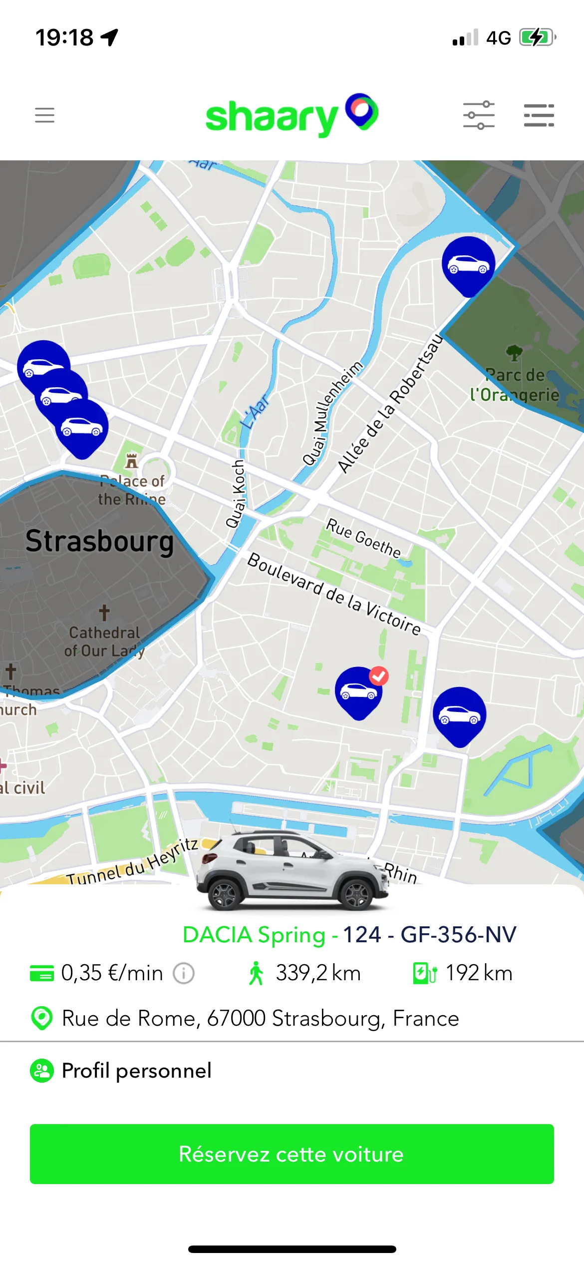 Après Marseille, l’entreprise Shaary a décidé de se déployer à Strasbourg. Ce jeudi 12 mai, en partenariat avec l’Automobile Club, 30 Dacia Spring électriques sont disponibles en autopartage dans la ville. Pour en profiter, il suffit de télécharger l’application Shaary sur votre téléphone. (sur l’Apple Store ou sur PlayStore). En l’espace d’un clic, vous pouvez réserver un véhicule à proximité. "J’ai 15 minutes pour me rendre à la voiture et je n’ai plus qu’à la déverrouiller avec l’application. Ensuite, je peux me déplacer librement", explique Diego Isaac, directeur marketing de l’application Shaary. Seule condition à remplir pour profiter de ce déplacement en autopartage : avoir 21 ans et au moins deux ans de permis.