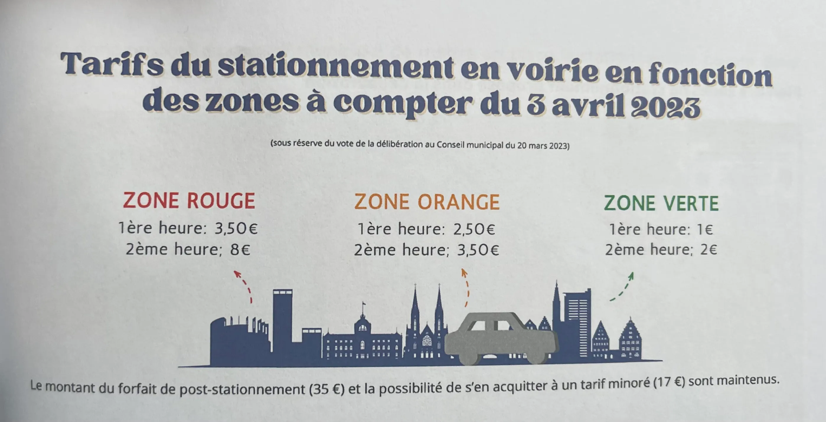 Changement du tarif pour le stationnement en voirie :