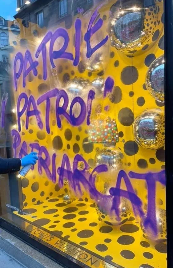 A l'heure où la question de la réforme des retraites agite de plus en plus les débats, les débordements sont à craindre, certains appelant à une action plus "musclée". Dans ce débat, l'opposition appelle notamment à taxer davantage les grandes entreprises pour financer le système. Est-ce dans cet esprit que la boutique Vuitton a été prise pour cible ce mardi ? On pouvait notamment y lire "Patrie, Patron, Patriarcat". L'acte n'a pas été revendiqué, mais il peut tout aussi bien toucher un milieu jugé machiste et rétrograde pour l'image de la femme, ainsi que la cause animale. En effet, la vitrine des foies gras d'Alsace Artzner a aussi été touchée.