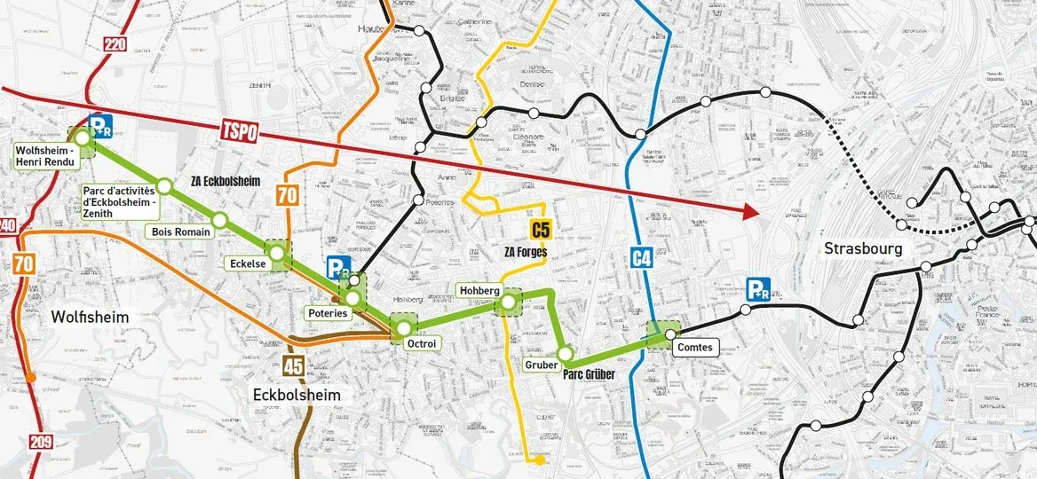 Le tram vers l’Ouest de Strasbourg est sur les rails ! Sur 4 kilomètres, l’extension de la ligne F relie désormais Koenigshoffen, Hohberg, Poteries, Eckbolsheim et Wolfisheim. Ce projet comprend également un parking-relais de 100 places au terminus Henri-Rendu à Wolfisheim, connecté à la ligne 240 du Réseau Express Métropolitain Européen (REME). Il est accompagné de plus de 6 kilomètres de pistes cyclables et des trottoirs élargis pour que la sécurité des piétons y soit aussi assurée. Dans le sillage du tram, le réseau de bus s’engage dans une réorganisation plus globale, afin de mieux connecter les quartiers entre eux.