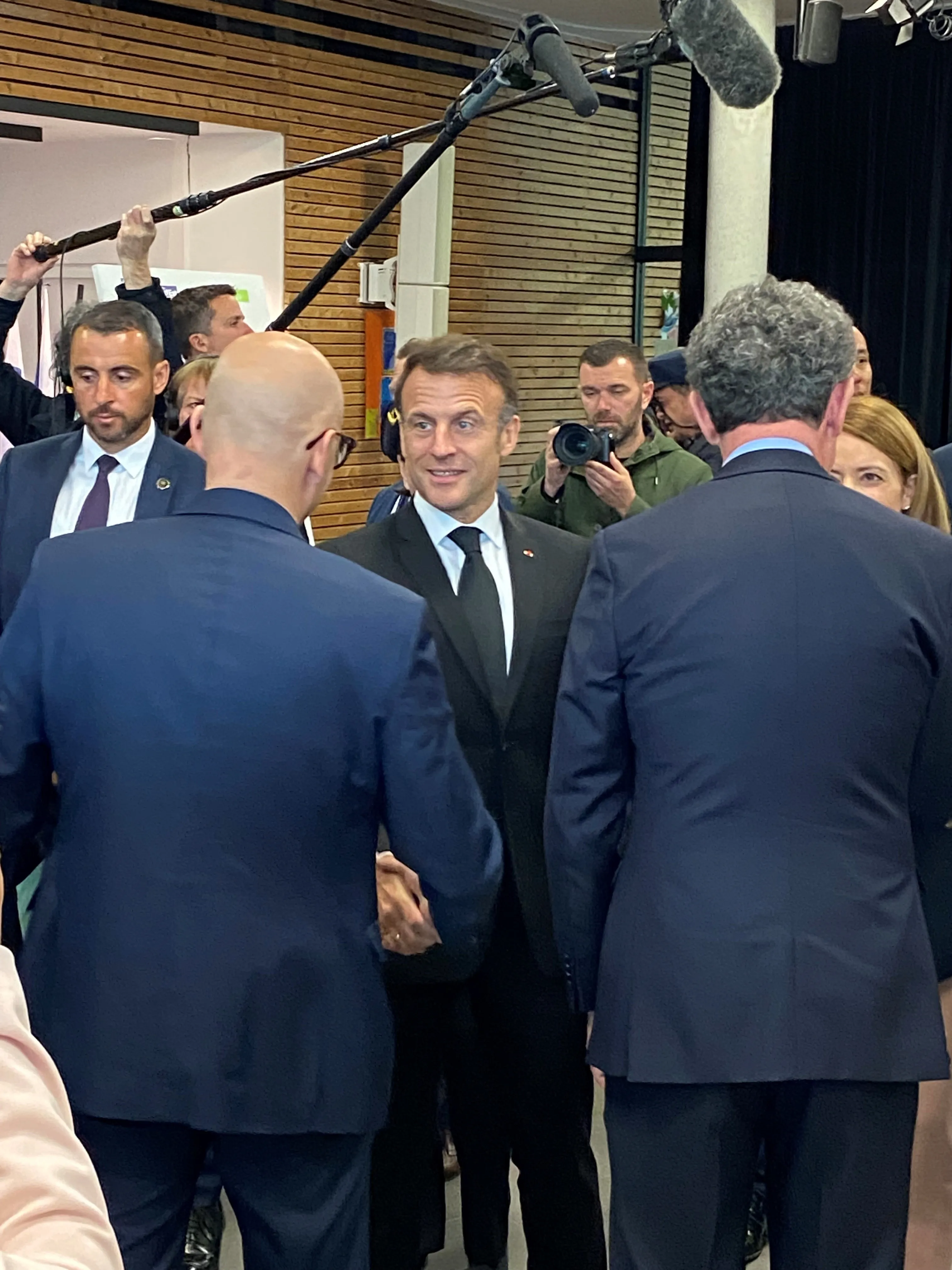 Emmanuel Macron a salué les élus locaux, ici Frédéric Bierry, le président de la CeA / @Top Music - SR