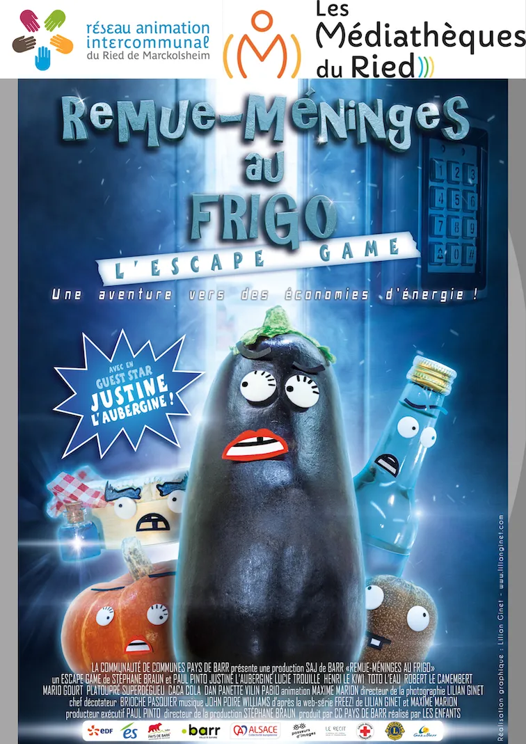 « Remue-méninges au frigo », c’est le nom de l’escape-game « avec Justine l’aubergine en Guest star » ! Le jeu propose une dizaine d’énigmes à résoudre sur le thème de l’environnement et pour vous inciter à faire des économies d’énergie. Pendant une heure, vous jouerez en famille (à partir de 8 ans) ou entre amis (pour les ados dès 10 ans). Les équipes sont composées de six joueurs maximum.