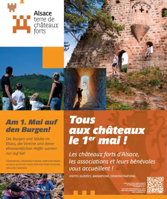 Oyez oyez gentes dames et gentils damoiseaux, bienvenue au château ce lundi 1er mai avec l'opération "Tous aux châteaux !" Les principaux châteaux forts d'Alsace y participent. Un beau programme avec de nombreuses animations sur 27 sites (25 châteaux, 2 cités fortifiées à Westhoffen et Obernai et un château allemand, L'Hardenbourg) : participez à la réalisation d’un blason au château du Hohlandsbourg ou assistez à un spectacle inédit de fauconnerie équestre au château de Lichtenberg.