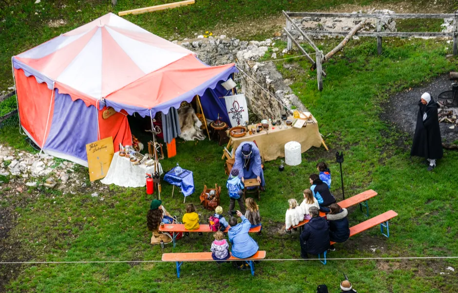* Présentation vivante et interactive de « La vie de château ». Découvrez le château-fort tant d’un point de vue architectural que de la vie quotidienne : armement, équipement militaire, architecture défensive, technique de construction, confort etc. De 10h30 à 12h30 et de 13h30 à 17h30