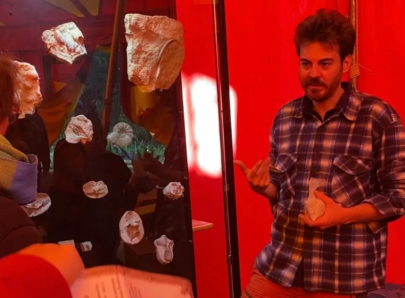 Jean-Philippe Blouet a posé ses valises au Parc animalier de Sainte-Croix à Rhodes durant les vacances de la Toussaint. Le paléontologue propose notamment du taillage de fossiles aux petits comme aux grands.