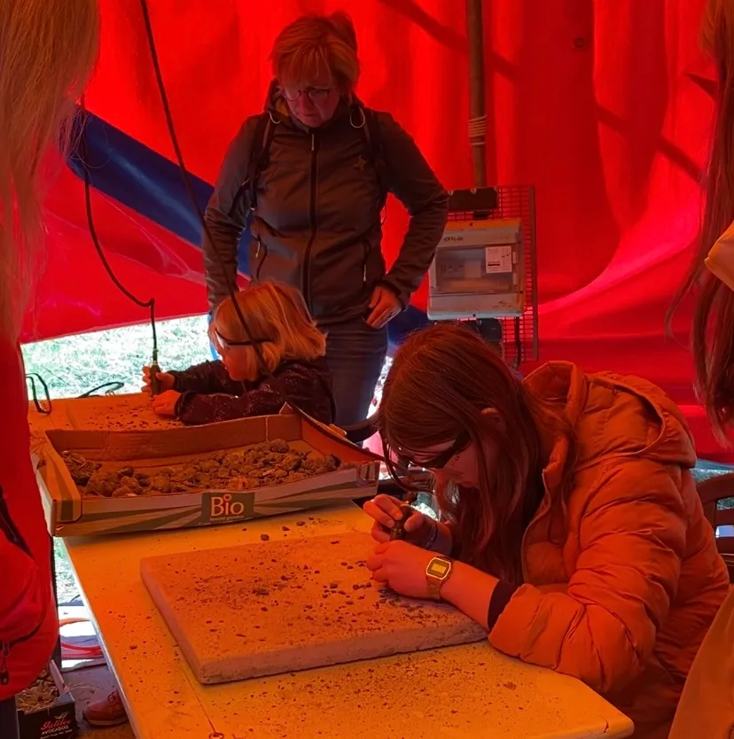 Des ateliers de taillage de fossiles sont proposés. Crédit : JC
