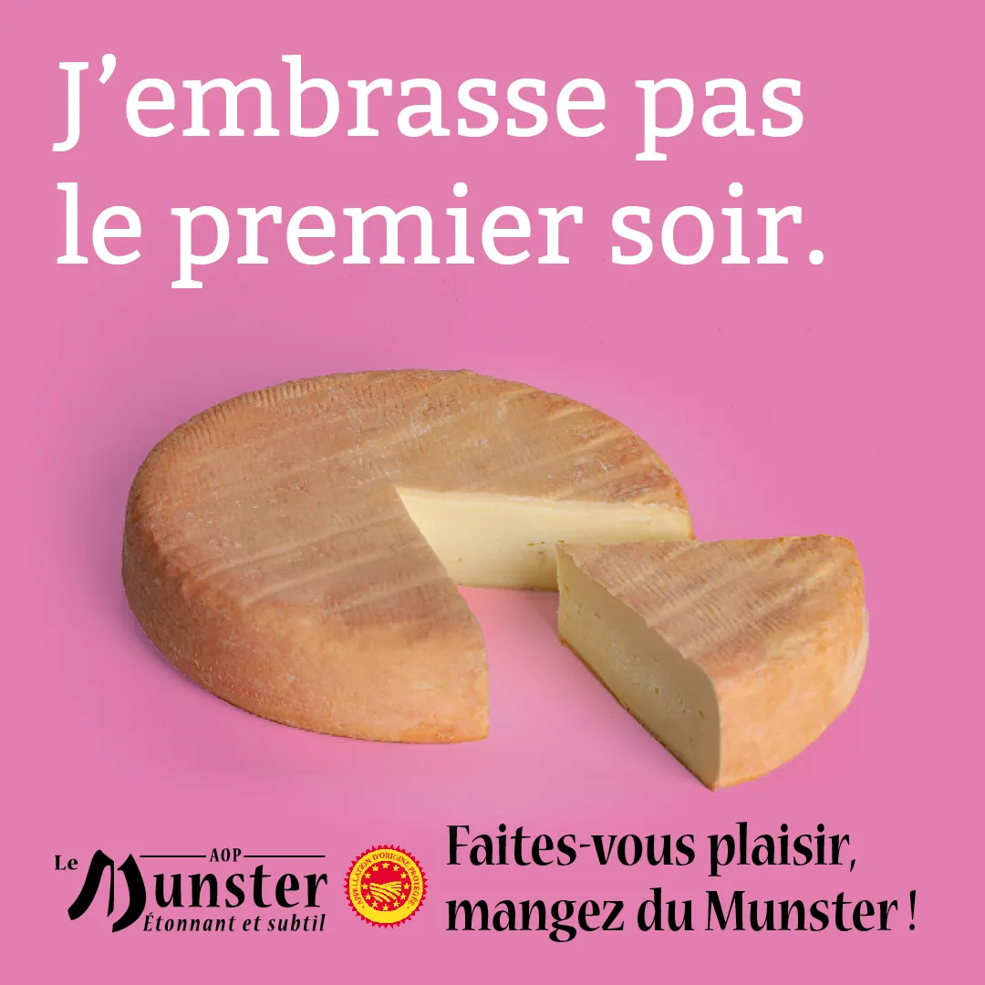 ‘’J'embrasse pas le premier soir’’. C’est l'un des slogans choisis par le Syndicat Interprofessionnel du Fromage Munster pour sa nouvelle campagne de communication au ton décalé.