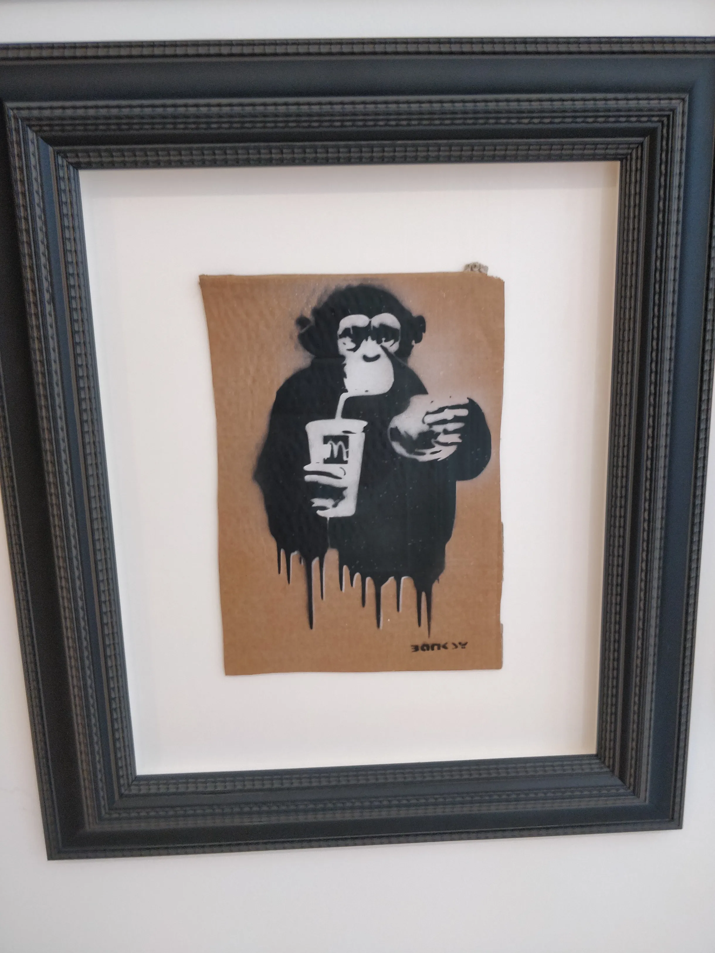 Dans l’exposition, il y a également deux œuvres de Banksy. "C'est la nouvelle génération d'artistes qui comme Jeff Koons font beaucoup dans la multiplication. En 2005, dans un parc d'attraction éphémère, Banksy avait caché des pochoirs et il avait distribué des bombes de couleur et avait autorisé des artistes qui étaient présents à utiliser ses pochoirs pour réaliser une oeuvre d’art signée Banksy”, précise Yannick Kraemer.